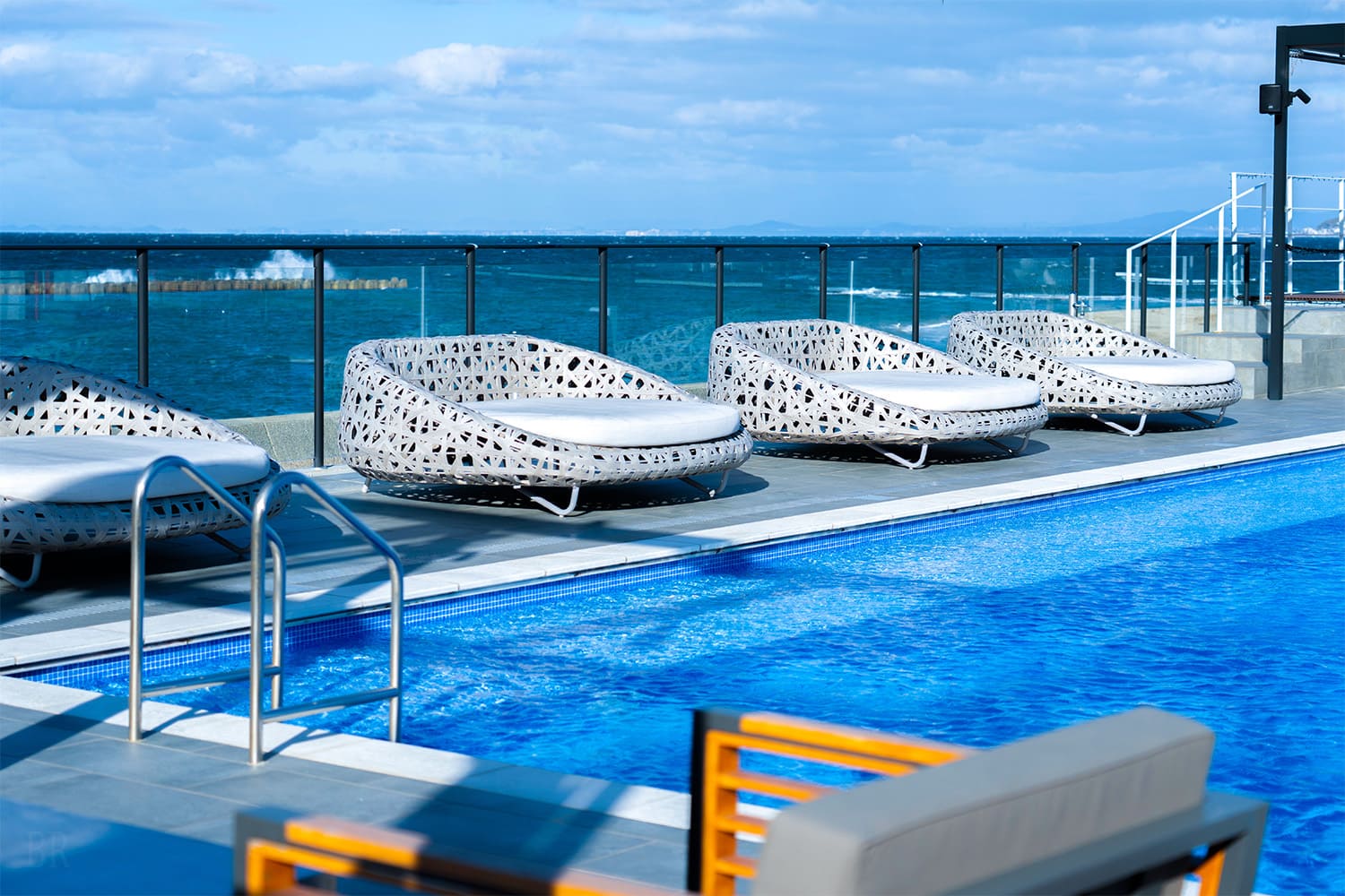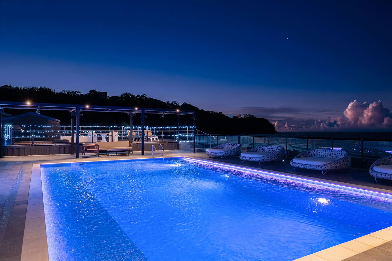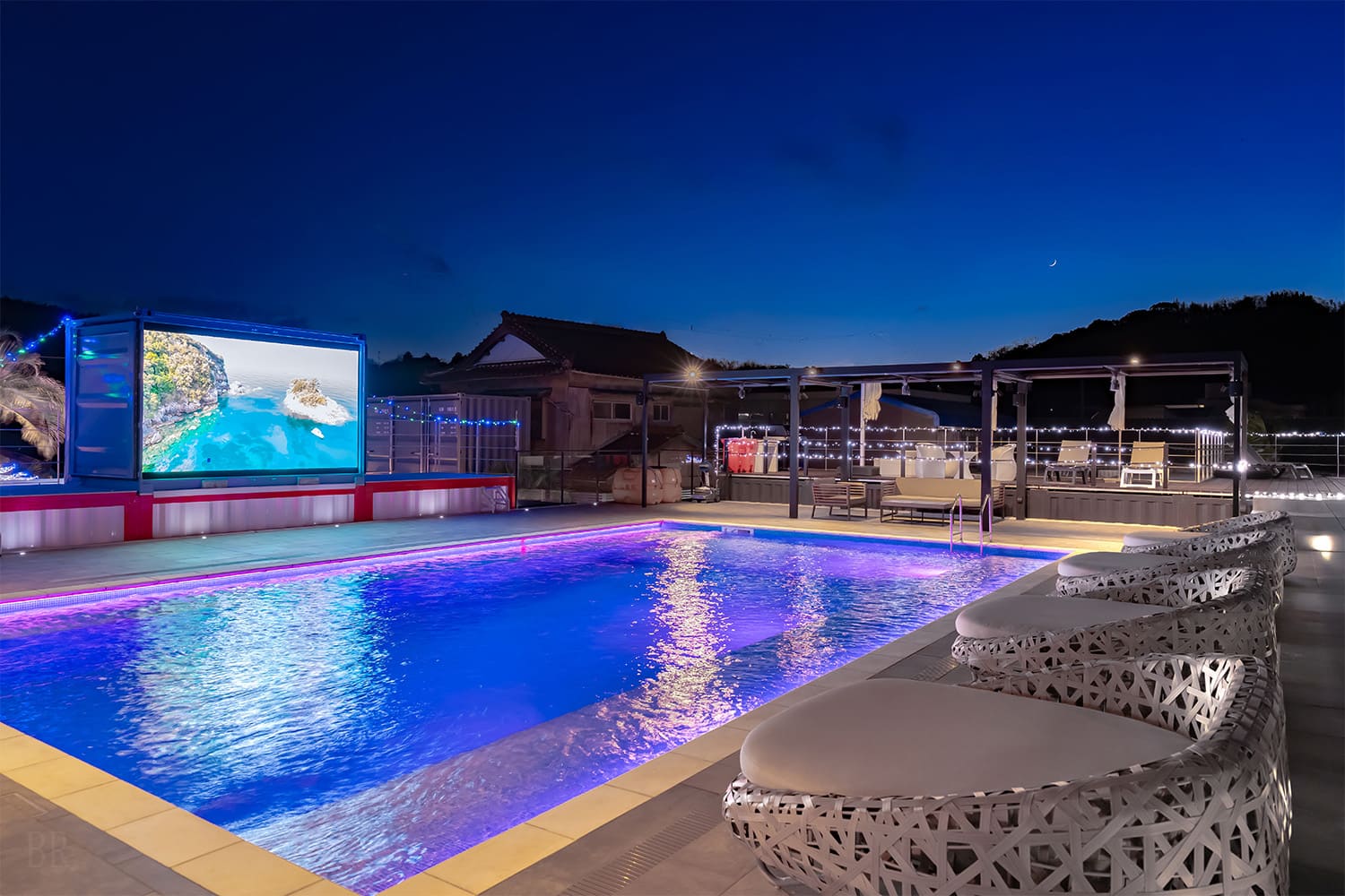 施設の主役である海外仕様のプールで、大人の「遊び」と「リラックス」を体験してください。 昼は音楽と映像で盛り上がり、夕方はサンセットの絶景を堪能。 そして、夜は光と音に包まれた幻想的なナイトプールへ。特別な時間割が、あなたのリゾート体験を格上げします。